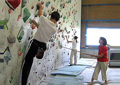 その人の体格によって登り方はさまざま、年齢や男女によって登り方もちがい、楽しみ方もいろいろ・・・。それがクライミングのおもしろさです。クライミング指導やルート作りの経験も豊富なスタッフが、初心者からエキスパートまで、その人に応じたアドバイスができます。
