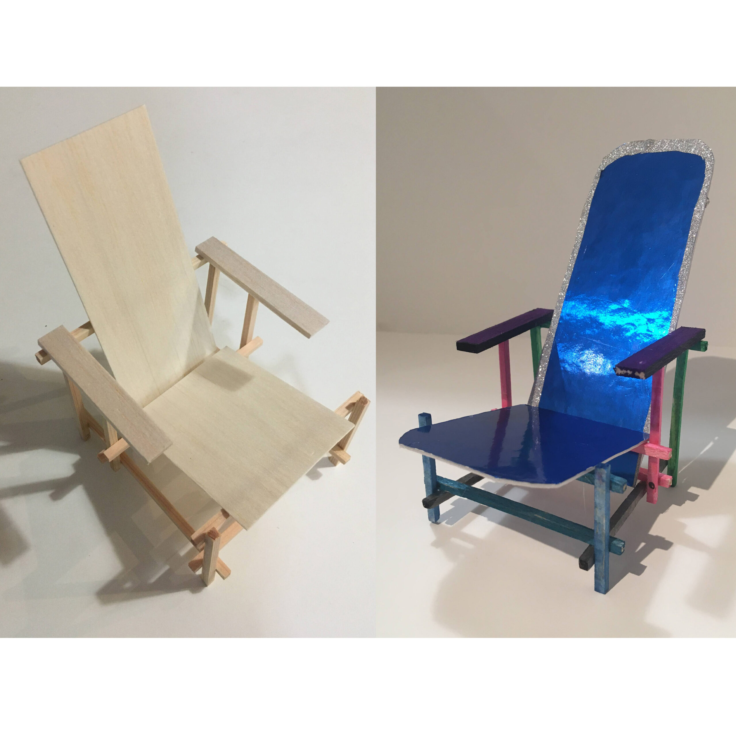 (例)A子さんとお母さんで、それぞれ「椅子の模型制作」を選択します。A子さんはカラフルな椅子にデザインし、お母さんはシンプルな木目を生かしたデザインにします。