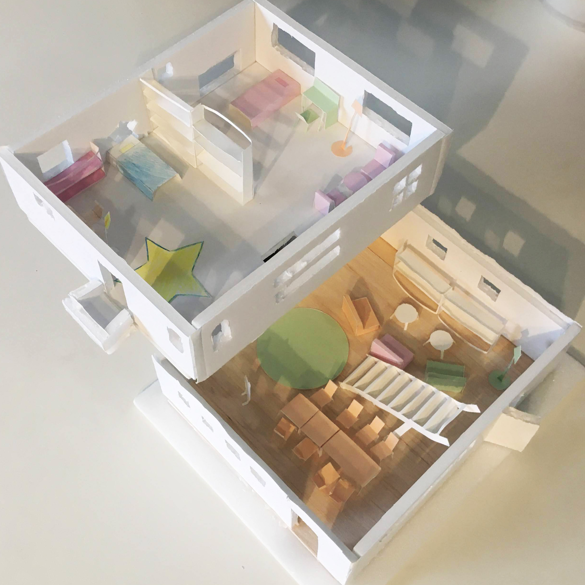 娘はもともとお家を考えることが好きで、おもちゃ屋さんでも人形のお家シリーズをよくねだっていました。将来の夢について話したときに家をつくりたいということで、お家のデザインができるようなところを探しましたがなかなかなく、ようやく見つけたのがこのデザインレッスンでした。