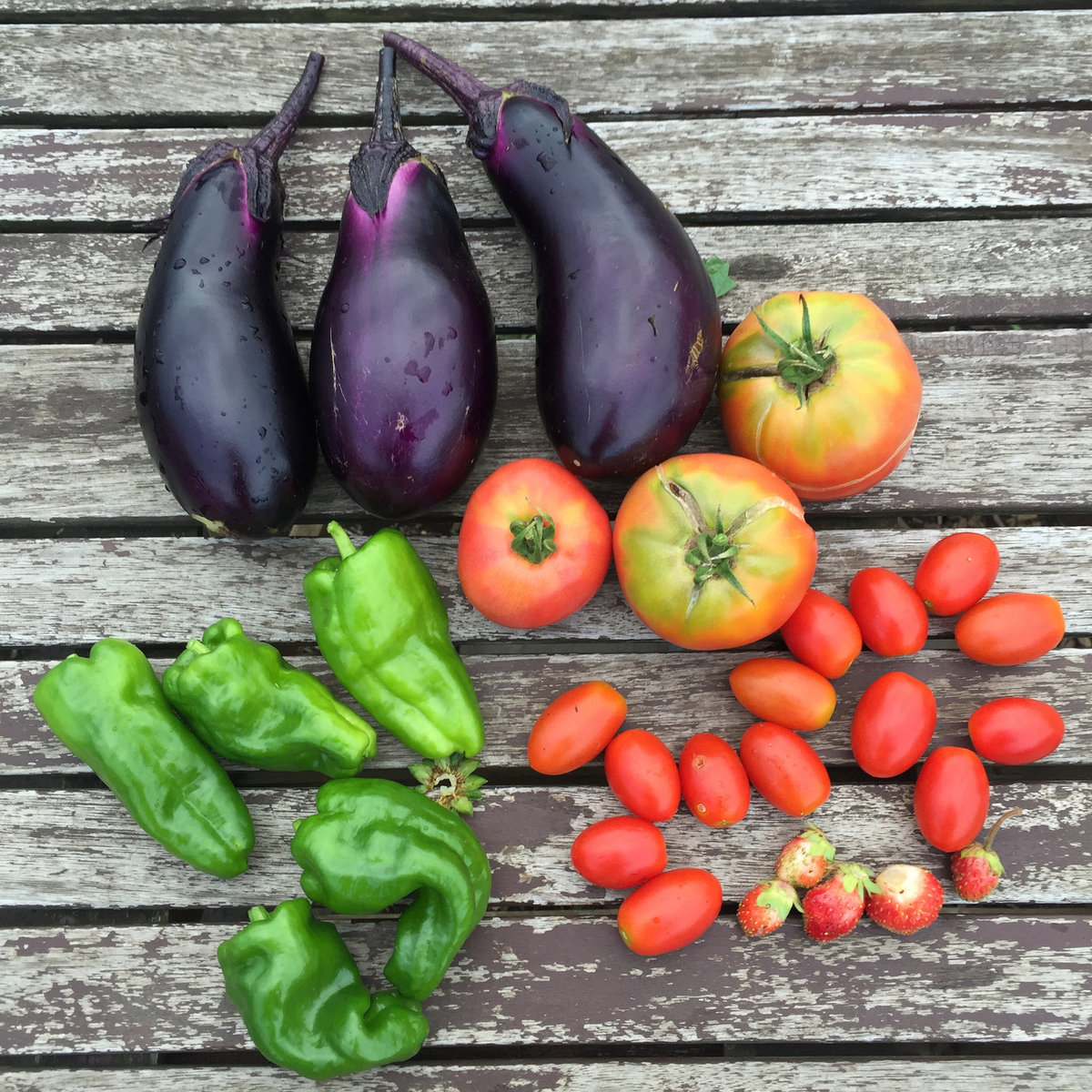 おおよそミニトマト160個、きゅうり100本、なす100個、ピーマン60個、枝豆600さや、人参50本など、